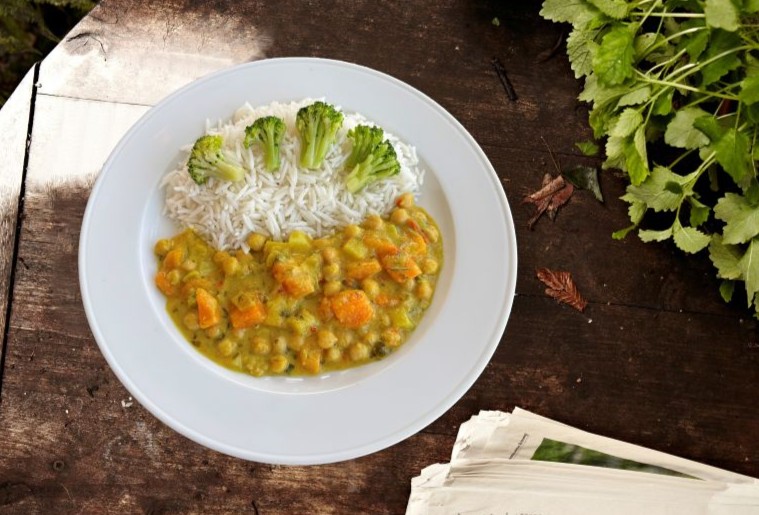 Kürbiscurry mit Brokkoli und Reis